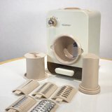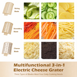 - 3-in-1 Functionality: Effortlessly slice, shred, or grate with interchangeable stainless steel blades.